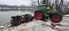 Am 14.01.2026 geriet in der Au ein Rückewagen bei Holzarbeiten über eine Böschung und kam kurz vor der Donau zum Stillstand.