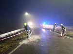 Die EinsatzkrĂ€fte zogen das Fahrzeug mithilfe der Seilwinde zurĂŒck auf die Fahrbahn und stellten es anschlieĂend an einem sicheren Ort ab. Danach wurde die Fahrbahn grĂŒndlich gereinigt und ausgelaufene Betriebsmittel wurden gebunden.