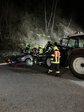 Simuliert wurde ein Unfall zwischen einen Traktor mit Gabeln und einem PKW. Die Personen wurden mittels Einsatz von Schere und Spreizer gerettet.