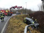 Die Einsatzkräfte hoben das Fahrzeug mithilfe der Feuerwehr Mauthausen zurück auf die Fahrbahn und entfernten es von der Einsatzstelle. Danach wurde die Fahrbahn gründlich gereinigt.