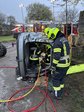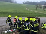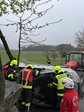Während ein Teil der Mannschaft die technische Rettung des eingeklemmten Fahrers mittels hydraulischem Rettungsgerät durchführte, kümmerte sich ein weiterer Trupp um die Rettung der verletzten Person aus dem Hochstand. Dabei musste die instabile Konstruktion zuerst gesichert werden, um ein gefahrloses Arbeiten zu ermöglichen.